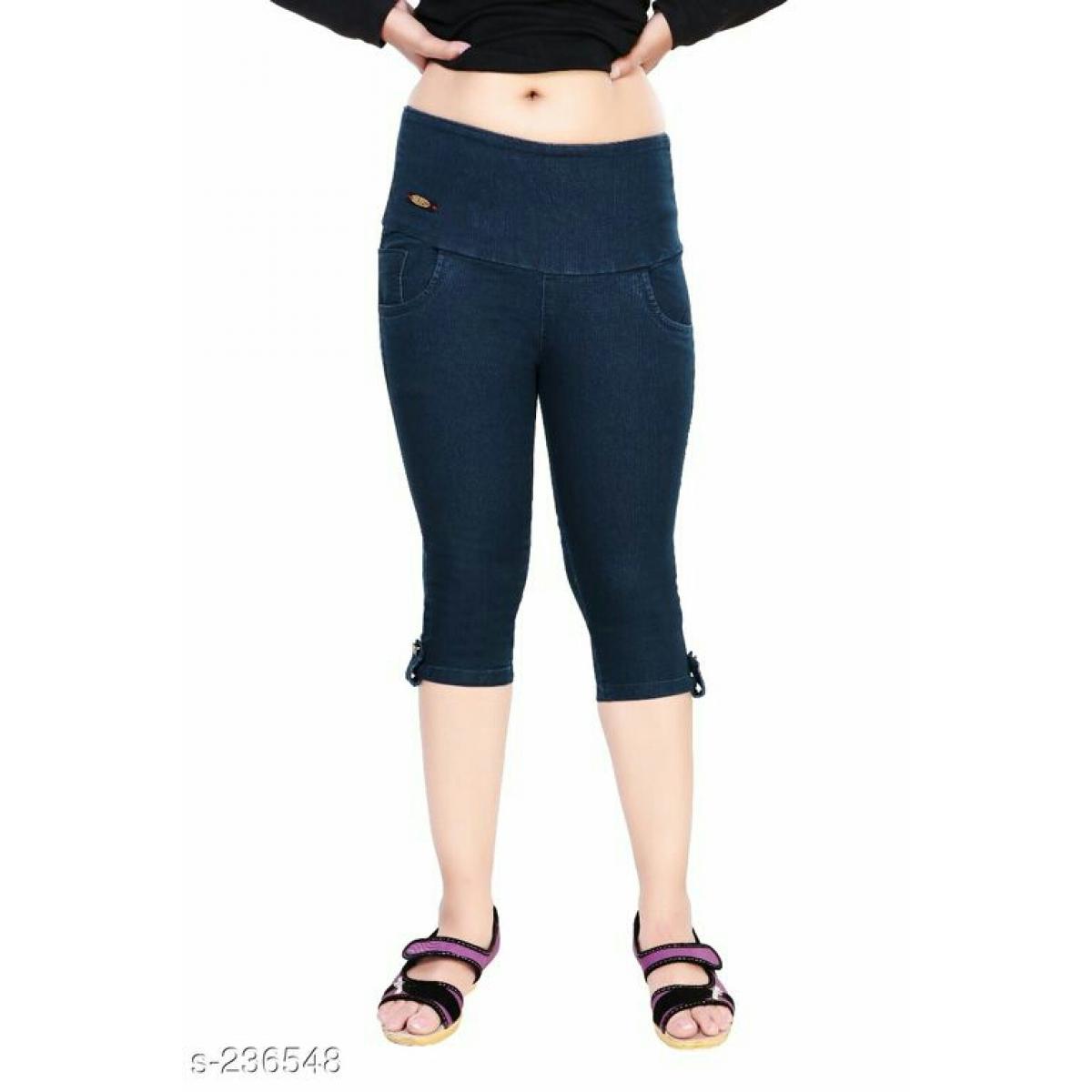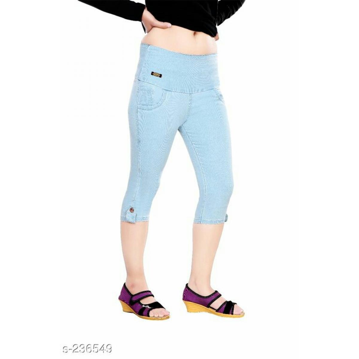 Women's Broad Waistband Denim Capris