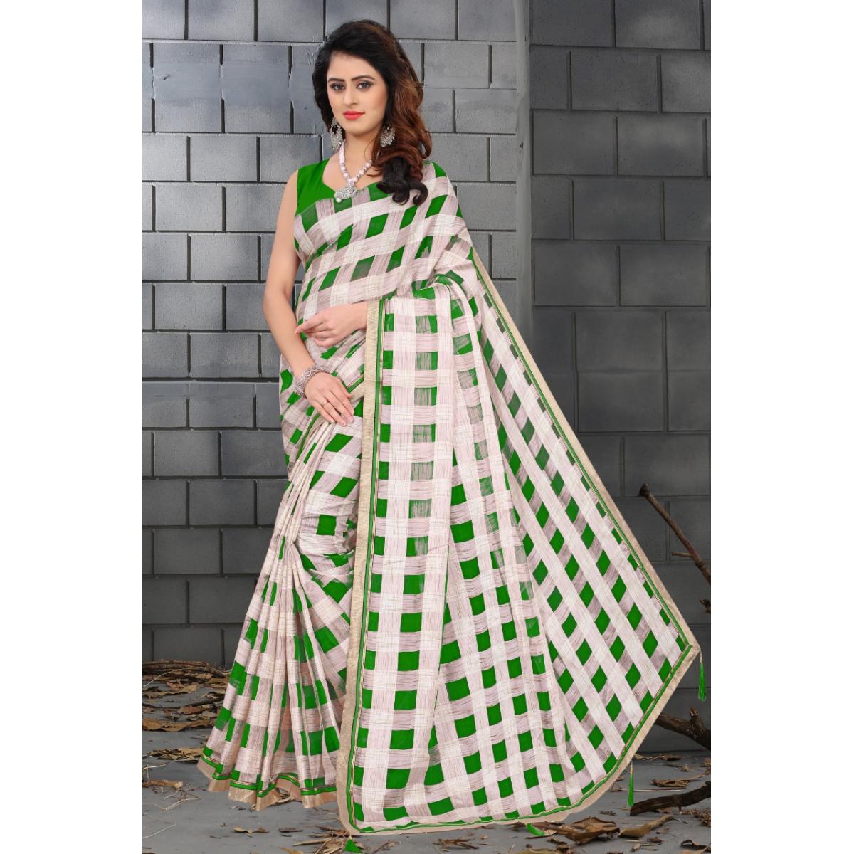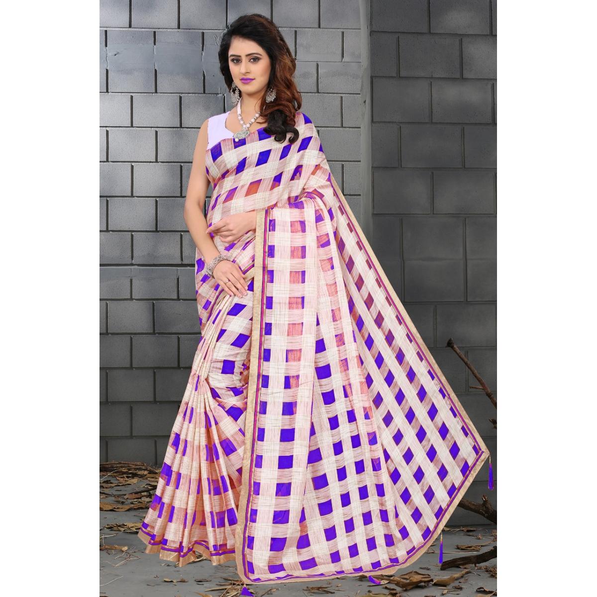 Latest Women's Organza checks Saree With Exclusive Jhalar & Plain Banglori Blouse