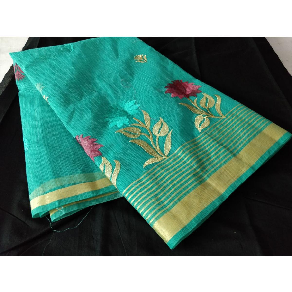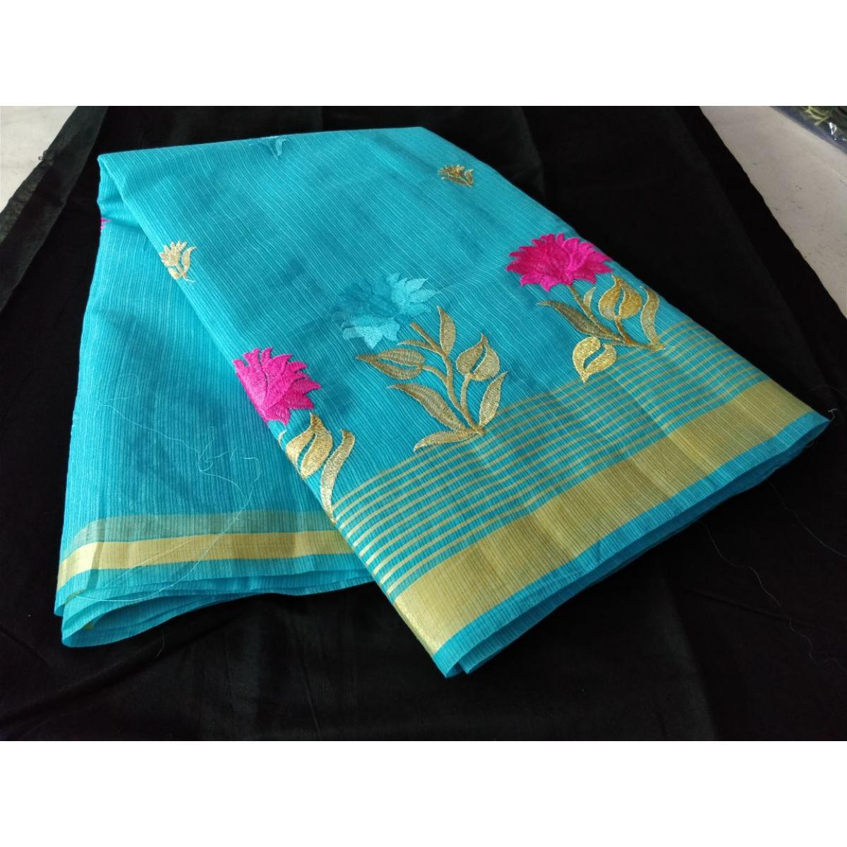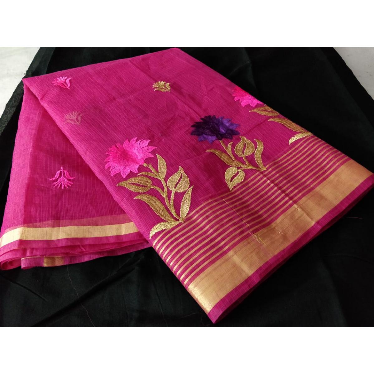 Beautiful Kota Doriya Zari Border Embroidered Sarees Along With Running Blouse