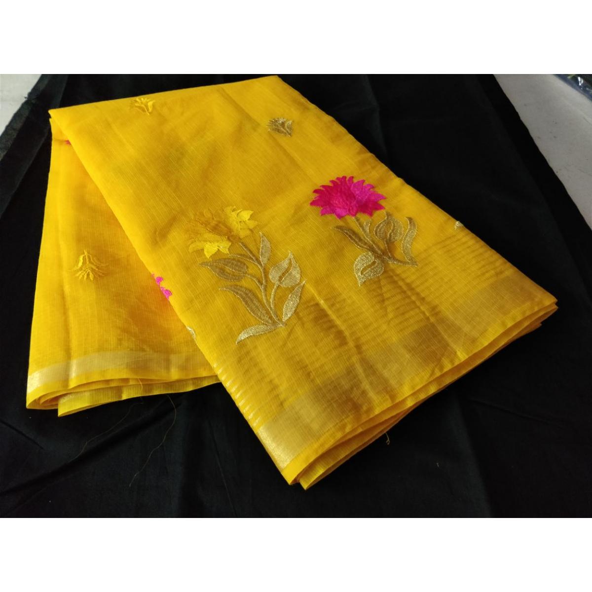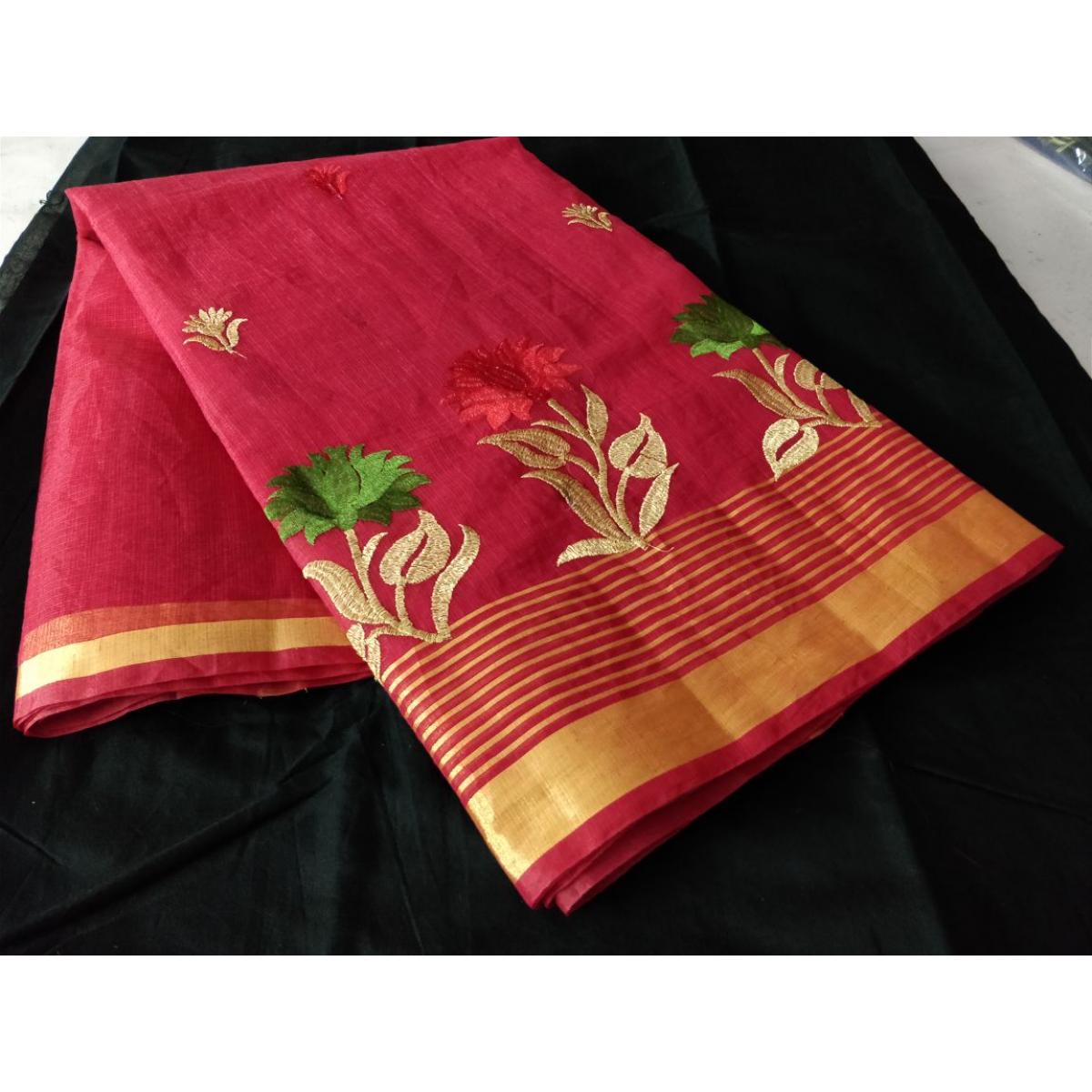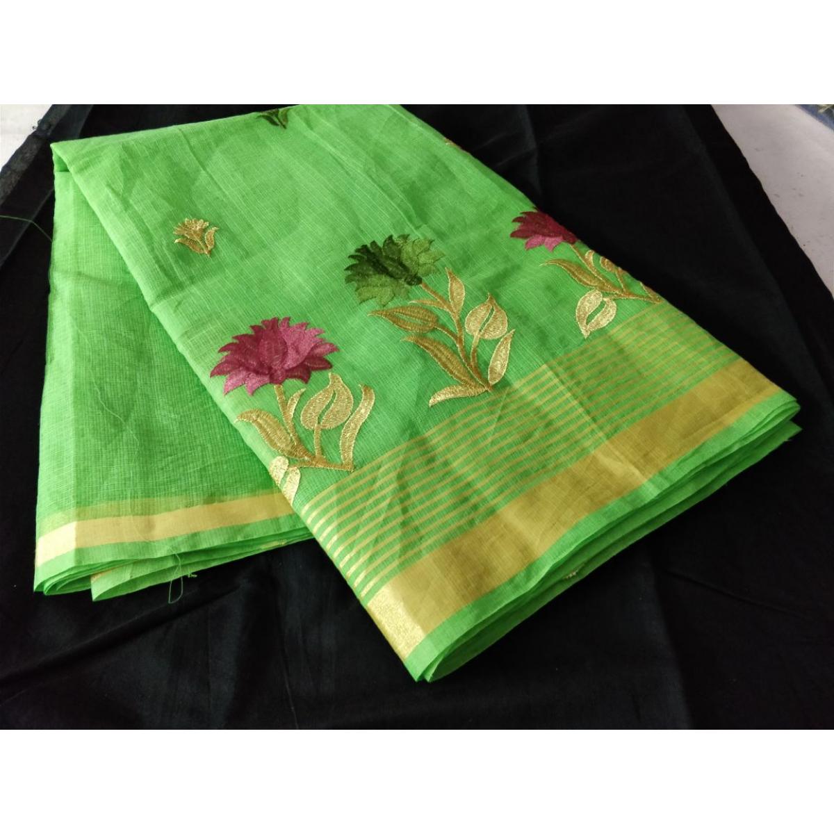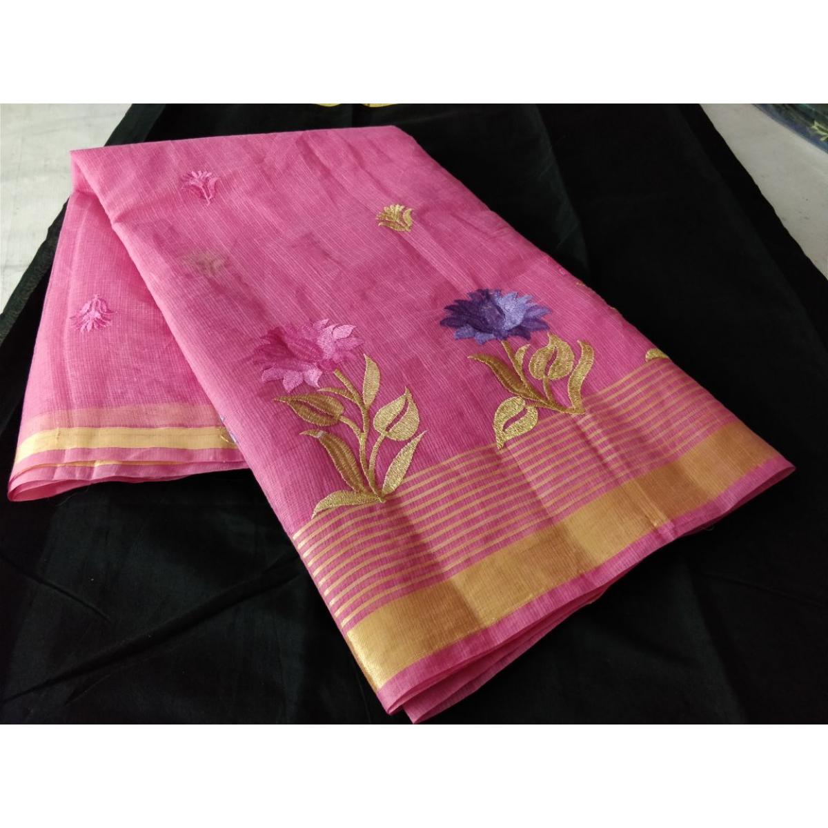 Beautiful Kota Doriya Zari Border Embroidered Sarees Along With Running Blouse