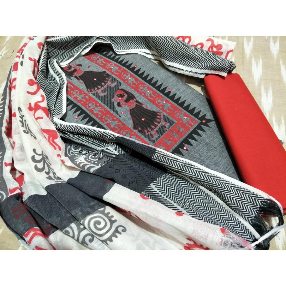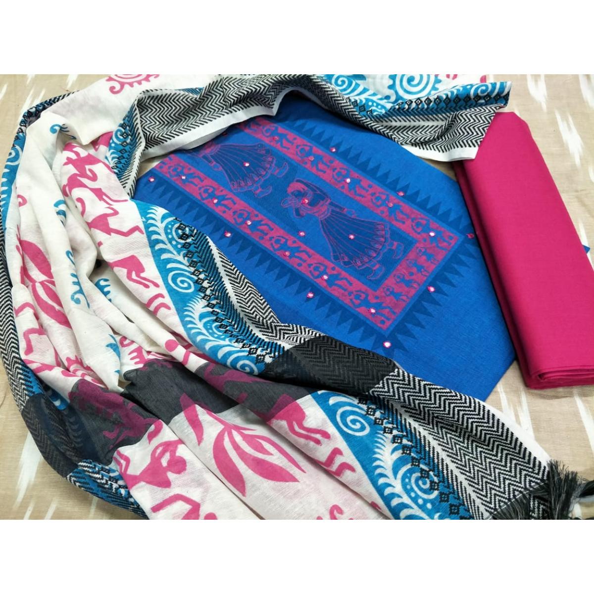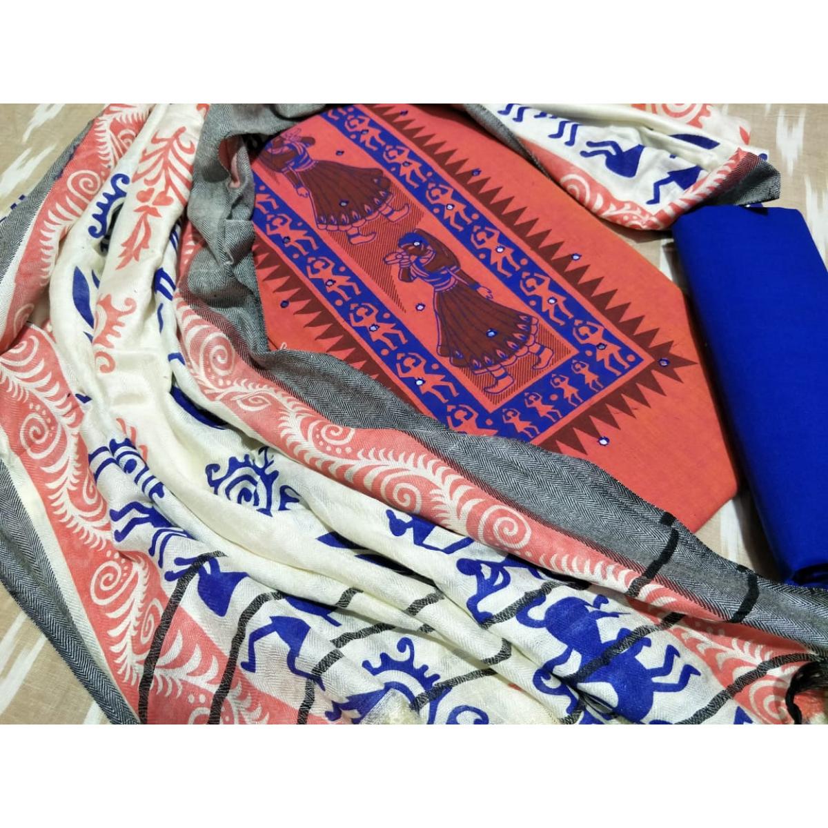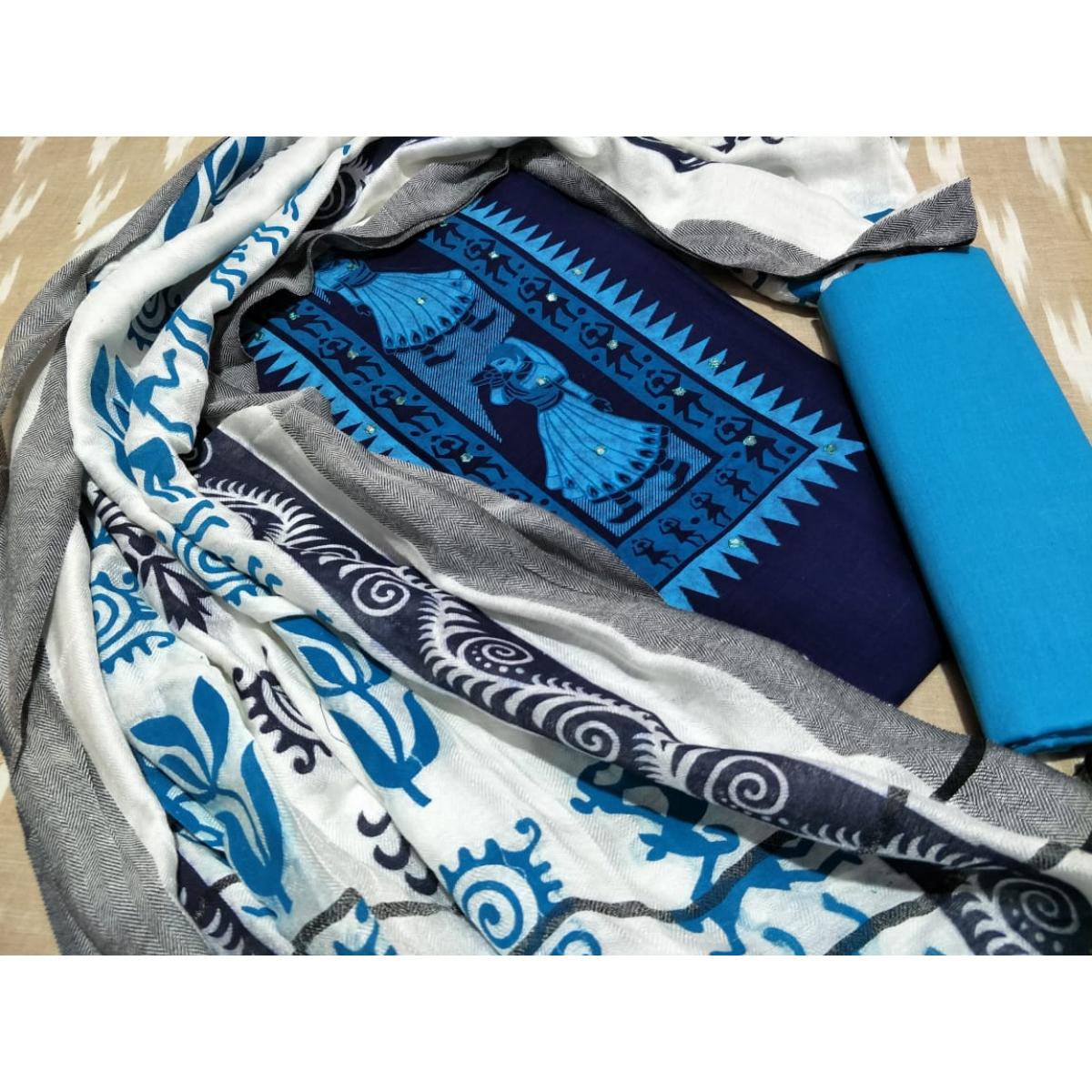 Handloom Cotton Varli Print with Foil Mirror Top,