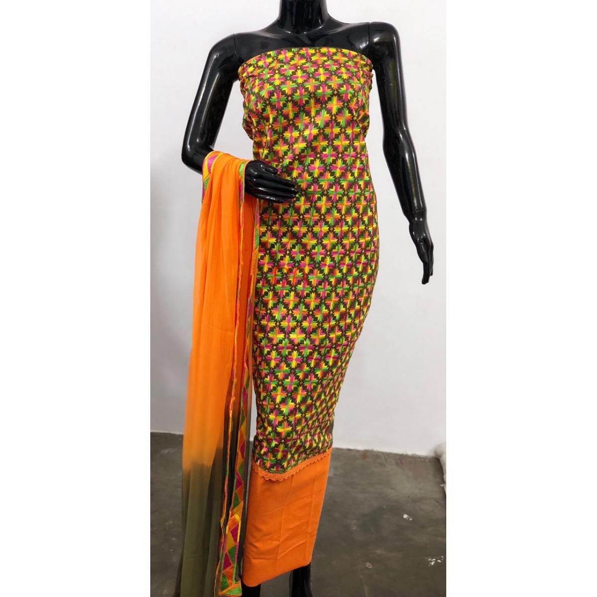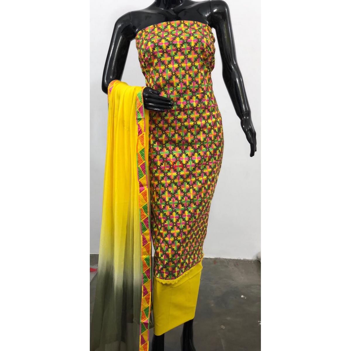 Beautiful Embroidered cotton suit ...Fully embroidered shirt ..plain bottom ..Chiffon four side embroidered duppatta