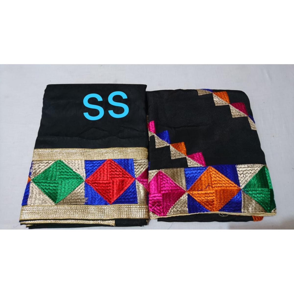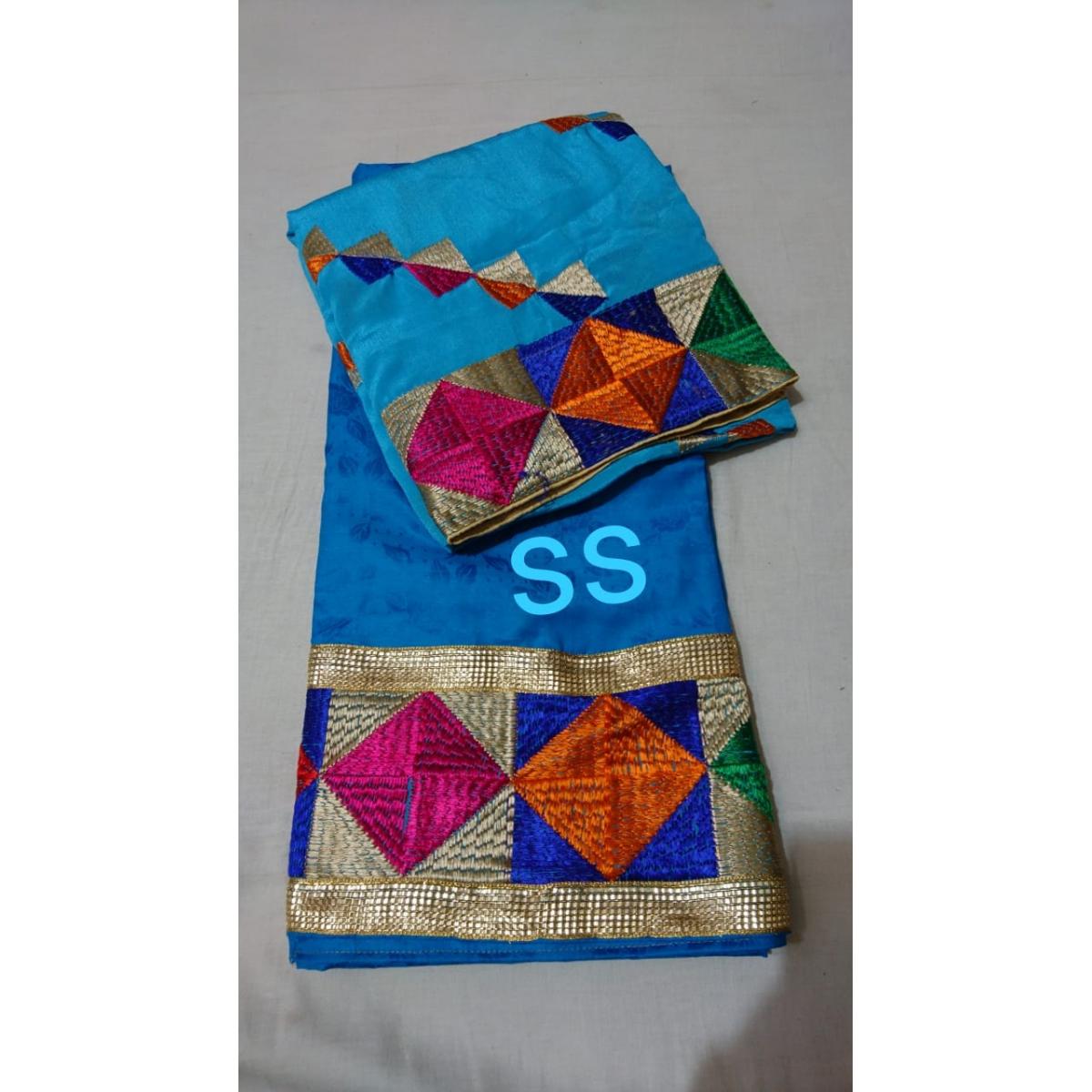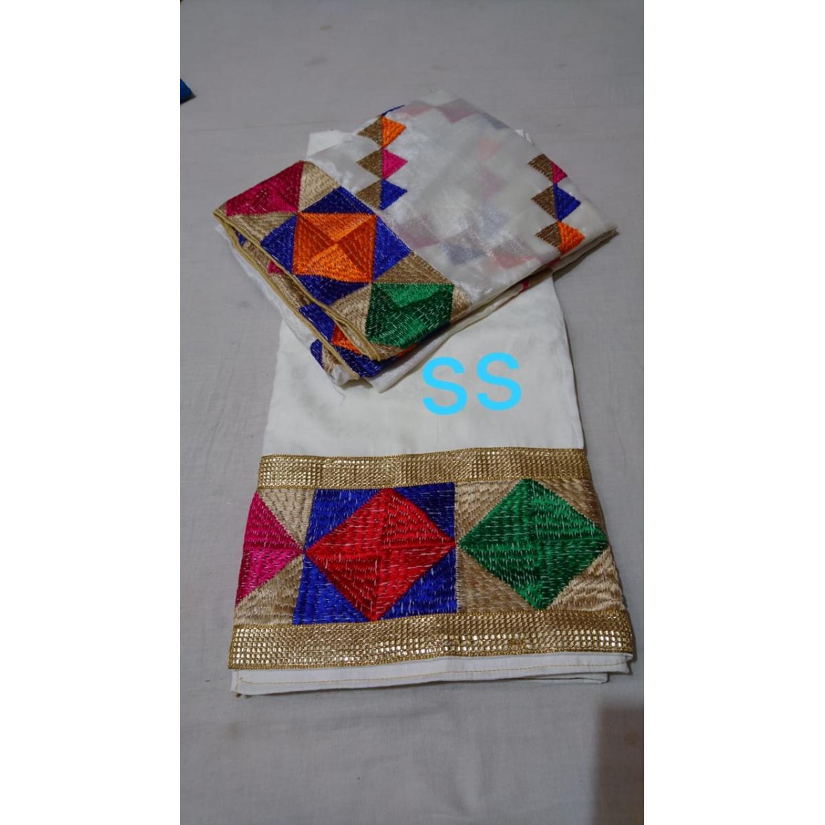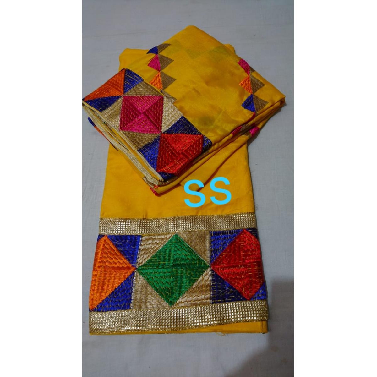With pure chinon fabric dupatta with beautiful phulkari work.